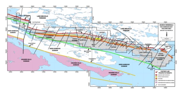 Jason Macintosh, Interim CEO, comments: “Search Minerals is evaluating these very prospective mineralized zones to explore for additional resources for a Foxtrot-Deep Fox CREE mining operation. The discovery of additional deposits within 10 km of the Foxtrot and Deep Fox resources would provide material to extend the life of the mining operation in the St. Lewis area.”